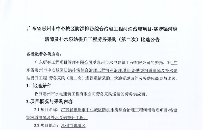惠州市水電建筑工程有限公司勞務供應商庫擴庫評審結果公示……
